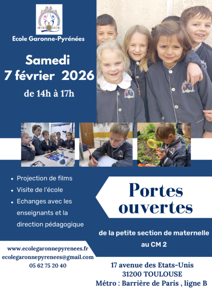 L'école Garonne-Pyrénées se donne pour but l’épanouissement personnel de chaque enfant, au moyen d’une éducation complète et personnalisée... suite